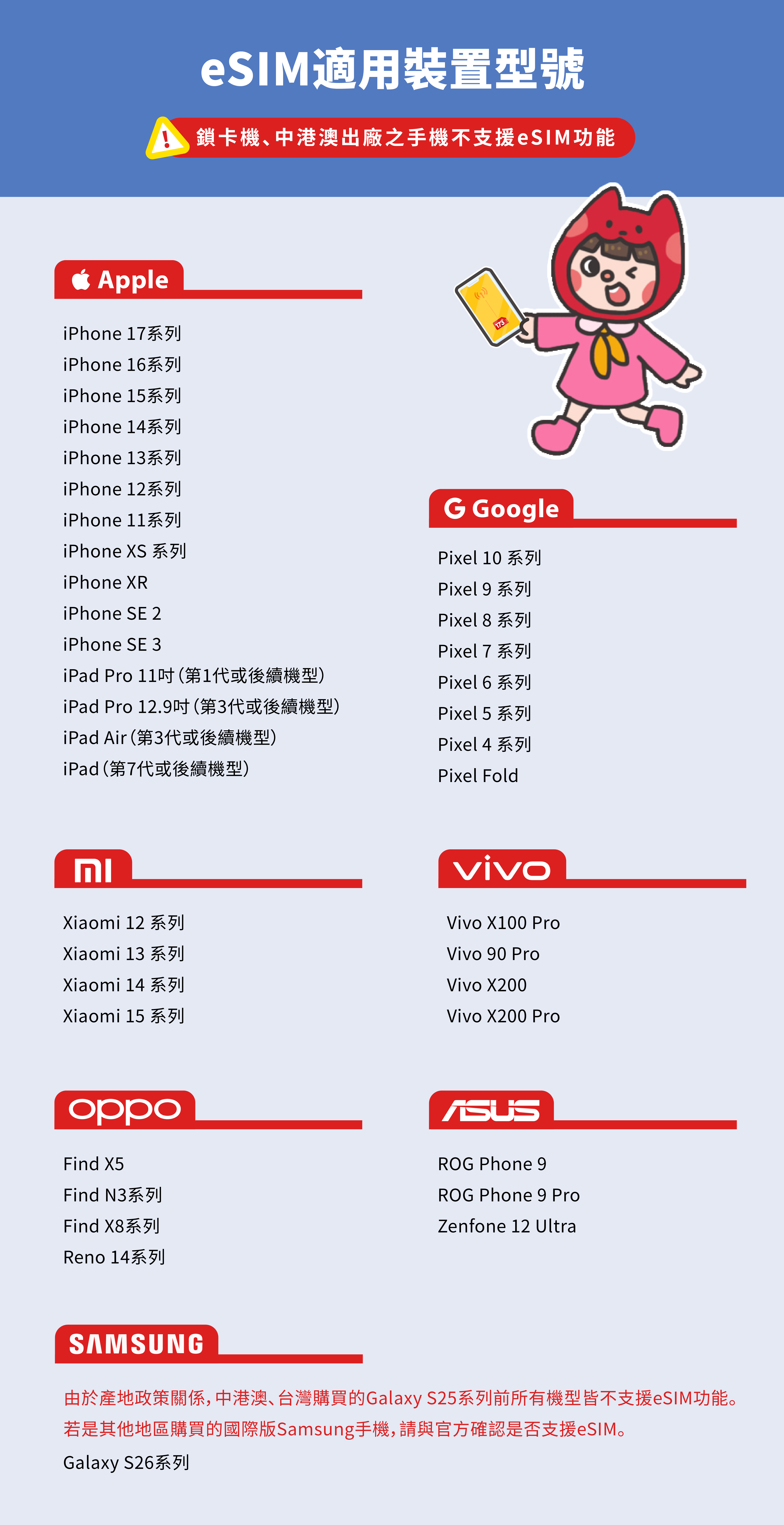 ios需12.1或以上版本,中港澳手機部分不開放eSIM功能,購買前請先與客服確認。